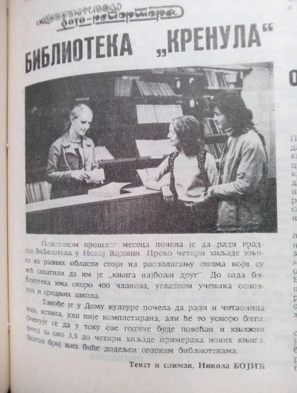 Напорима омладине Нове Вароши, а уз помоћ старијих угледних грађана, проте Јевстатија Караматијевића, Влада Ристића, Влада Борисављевића и других, после више година је отворена градска читаоница. Скупштина је усвојила „Правила Градске читаонице и књижнице“, која је среско начелство одобрило. Читаоница је тада преузела књижни фонд бившег културно – уметничког друштва „Ђура Јакшић. За председника читаонице изабран је прота Караматијевић. Градска књижница је радила све до окупације.